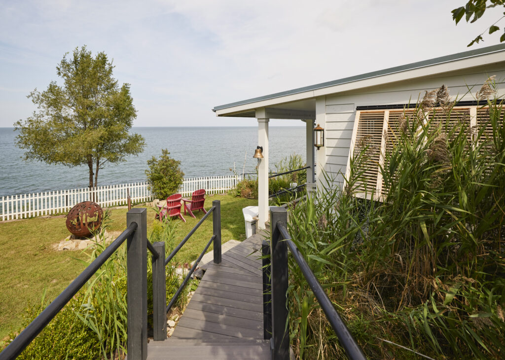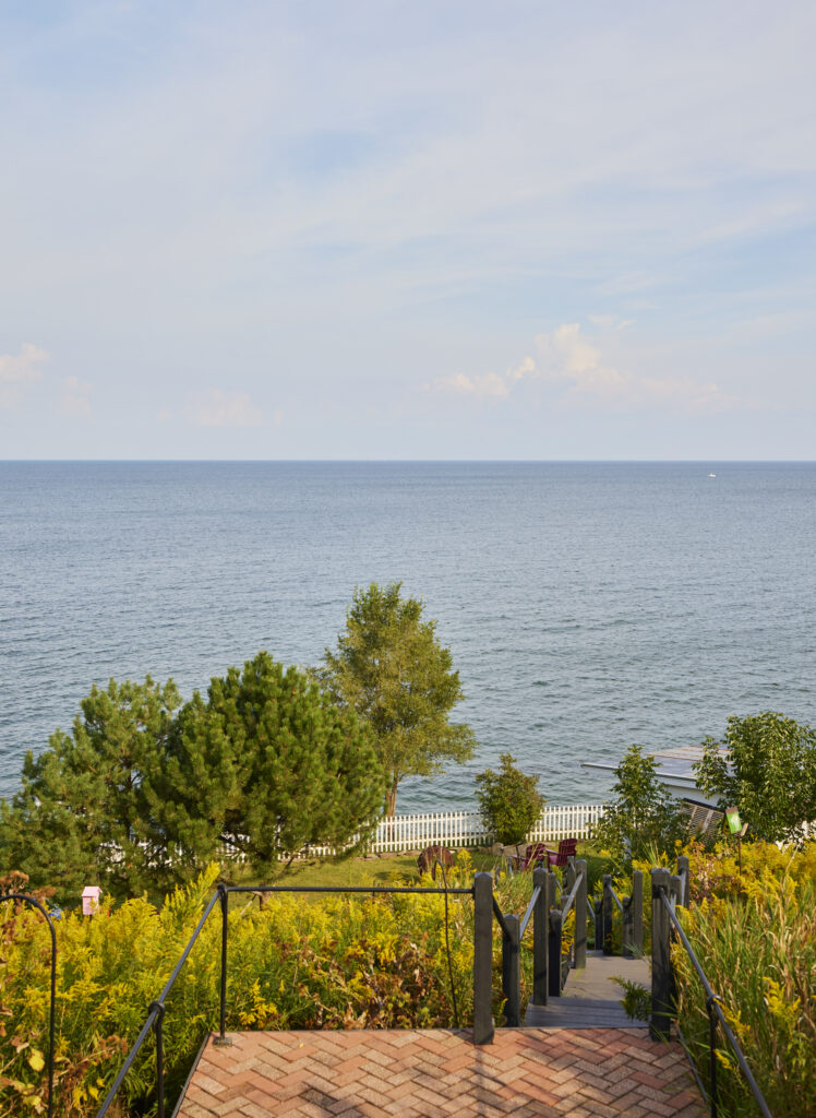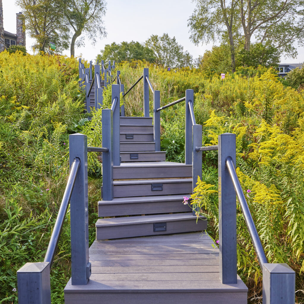 - A lighted staircase built into the hillside for direct access to the lake and cottage.