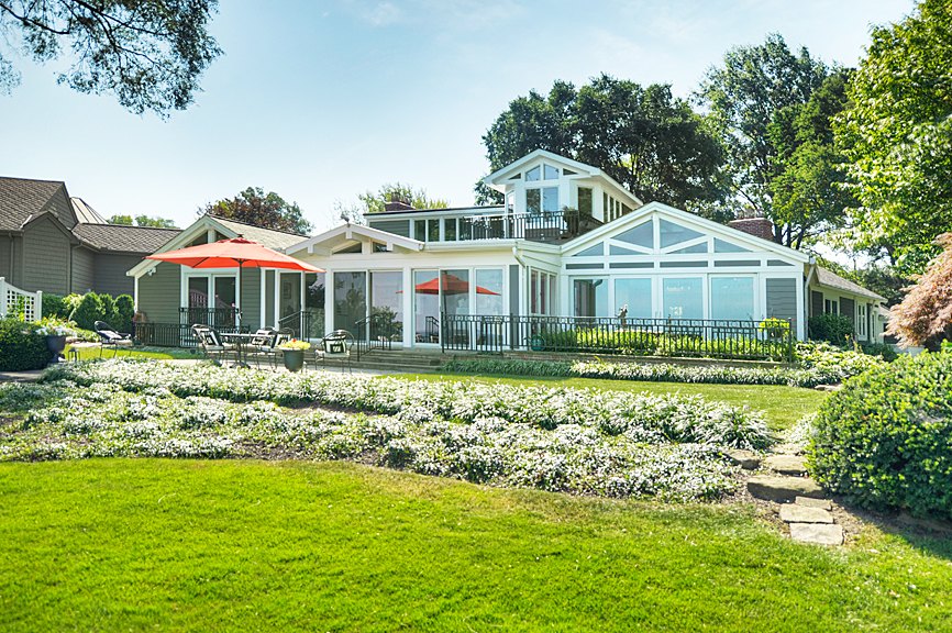 - Sandstone patio that opens to an impeccably manicured, terraced backyard with unobstructed views of the lake.