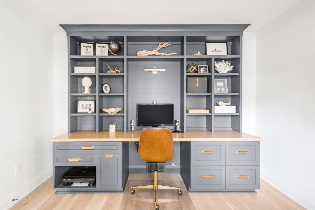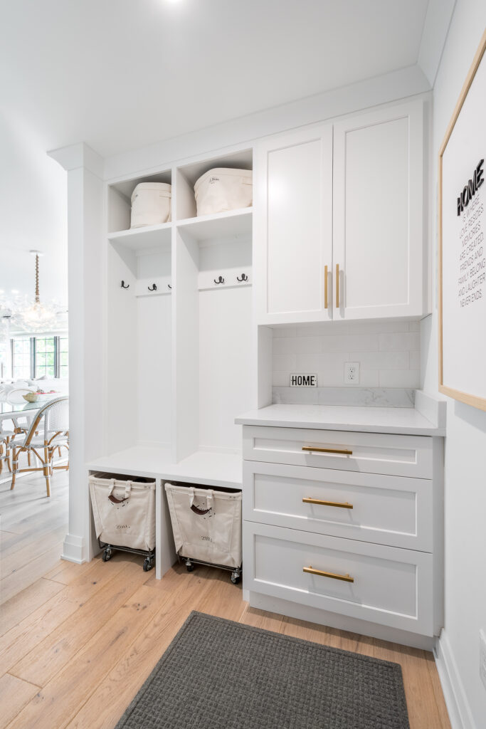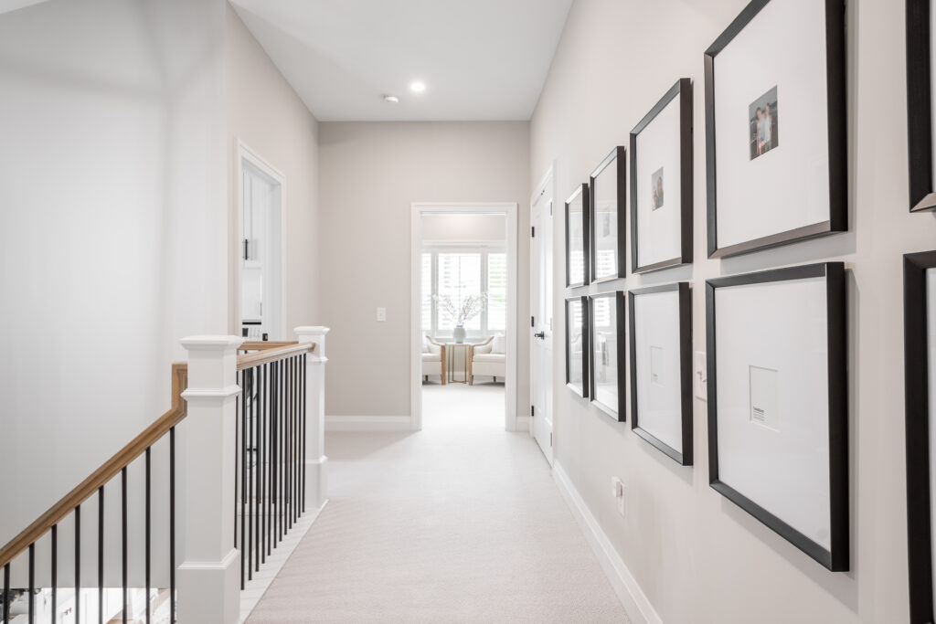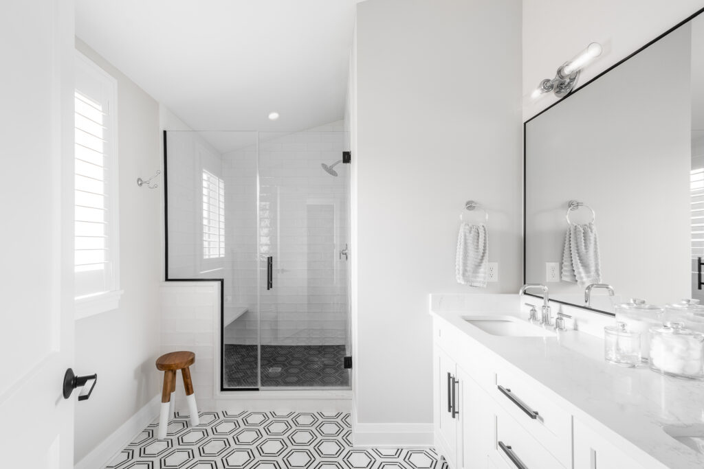Upstairs, a new primary suite and laundry room were constructed above the family room, while hallway bathrooms were reconfigured for more centralized access to the children’s bedrooms. A spacious game room was also added above the garage to create an additional space for family activities.