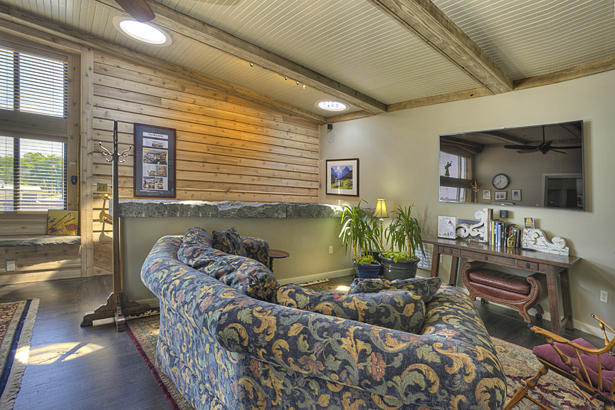 - A sailboat that was painstakingly refinished by artisans and was installed as the centerpiece where it resides on sandstone capstones from a demoed chimney. Finishing off the restoration, the sailboat is adorned with Microns that were used by the Krueger children to learn to skate.