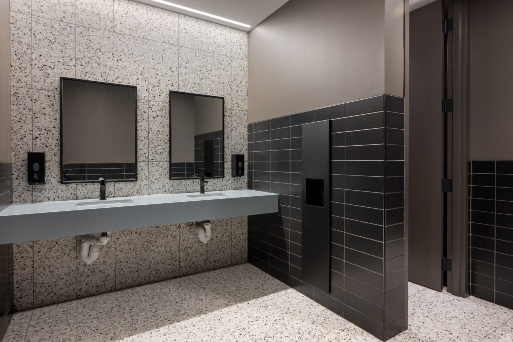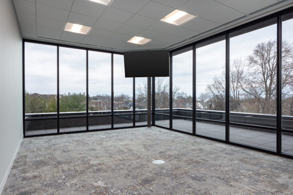 Walkout terraces off of executive suites with 2’ x 2’ porcelain pavers installed flush to the 3rd floor finishes.